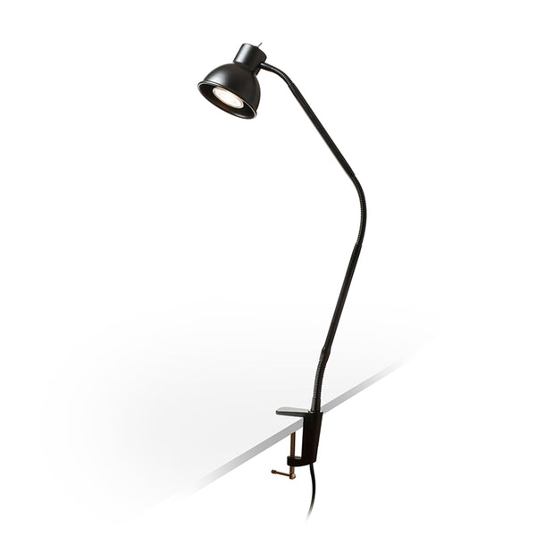 Ένα φωτιστικό με κλιπ με κωνική απόχρωση, ενσωματωμένο LED, βραχίονα λαιμόκοψης και διακόπτη ντιμμερ που βρίσκεται στο κλιπ. Το μέγιστο άνοιγμα του κλιπ είναι 2,5 εκ και διαθέτει μείωση της φωτεινότητας σε τρία βήματα.