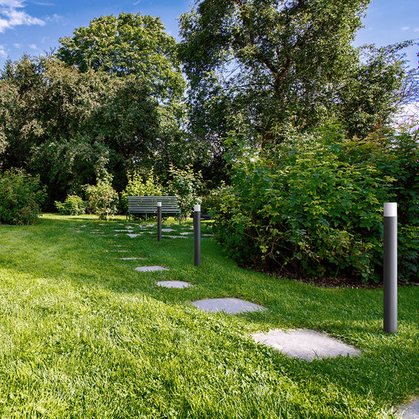 Κυλινδρικό φωτιστικό εξωτερικού χώρου από ίνες άνθρακα με υποδοχή GU10 για φωτεινές πηγές LED. Οι ίνες άνθρακα προσφέρουν μεγαλύτερη αντοχή σε περιβάλλον με θαλασσινό κλίμα.