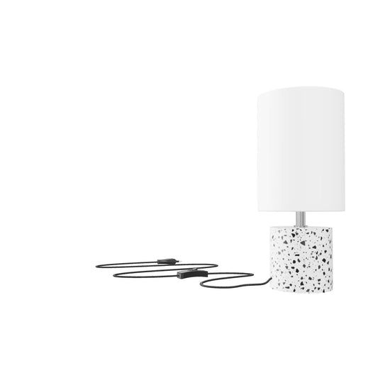 Μινιμαλιστικό επιτραπέζιο φωτιστικό, κυλινδρικού σχήματος με υφασμάτινο αμπαζούρ. Κάθε βάση έχει μοναδικό φινίρισμα.