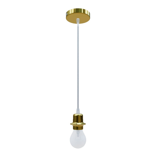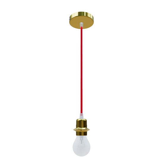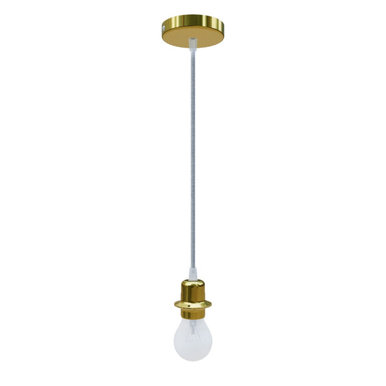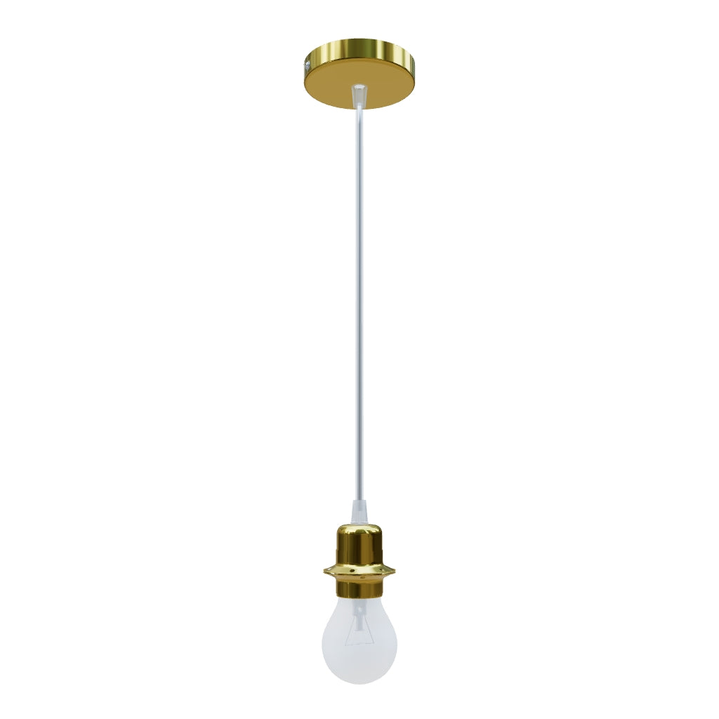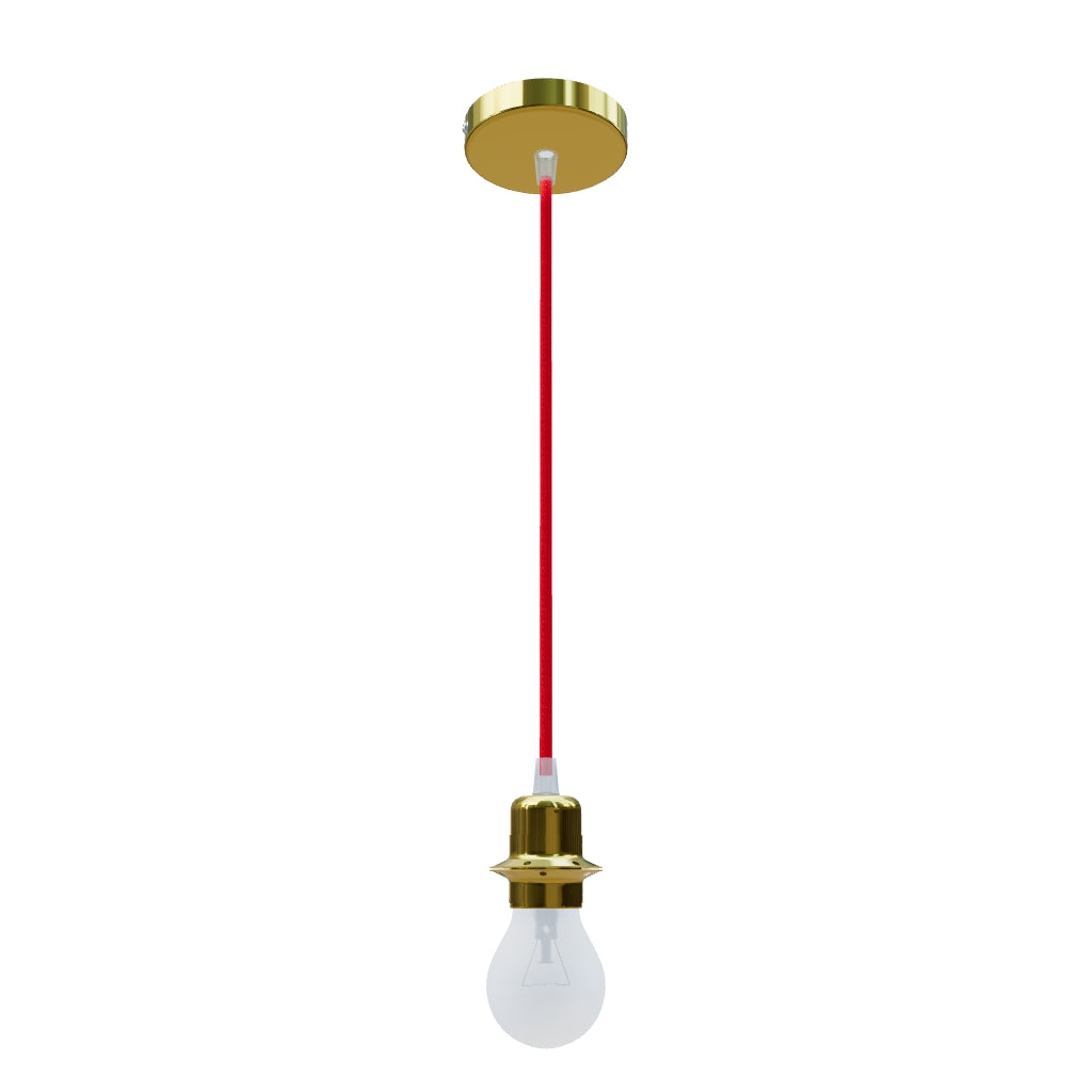Σετ αναρτήσεως με χρυσή κυκλική βάση, υφασμάτινο καλώδιο και μεταλλική βάση E27. Κατάλληλο για αυτόνομη χρήση ή για προσάρτηση σκιάστρων. Κατάλληλα σκίαστρα: ARISTA, DELI, JAKARANDA, DOUBLE 40/30, DOUBLE 55/30, ASPRO 40/30, RON 40/25, RON 55/30, RON 60/19, TEMPO 30/19, TEMPO 50/19.