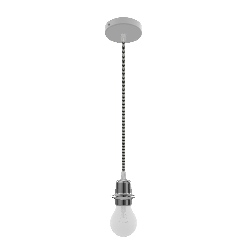 Σετ αναρτήσεως με λευκή λακαρισμένη κυκλική βάση, υφασμάτινο καλώδιο και μεταλλική βάση E27.Κατάλληλο για αυτόνομη χρήση ή για προσάρτηση σκιάστρων. Κατάλληλα σκίαστρα: ARISTA, DELI, JAKARANDA, DOUBLE 40/30, DOUBLE 55/30, ASPRO 40/30, RON 40/25, RON 55/30, RON 60/19, TEMPO 30/19, TEMPO 50/19.