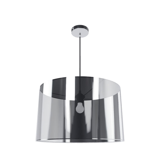 Διακοσμητικό σκίαστρο από χρώμιο κατάλληλο για κρεμαστά και επιδαπέδια. Η επιφάνεια του αμπαζούρ καθρεφτίζει όταν είναι σβηστό και είναι μερικώς διαφανής ότανφωτίζει.