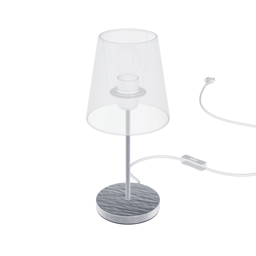 Επιτραπέζιο φωτιστικό σε λαμπερό και ματ μέταλλο για αμπαζούρ με βάση E27. Κατάλληλα αμπαζούρ.CONNY 15/15, CONNY 15/30, RON 15/20, TEMPO 15/15, TEMPO 15/30.