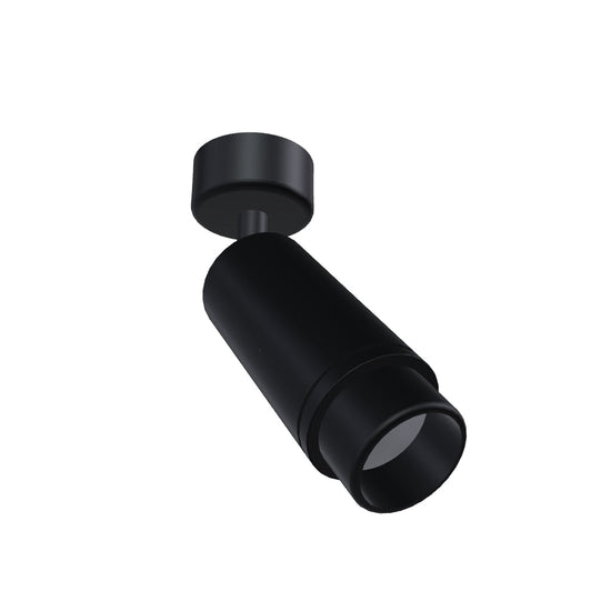 Κυλινδρικό φωτιστικό οροφής με δυνατότητα ρύθμισης του κώνου φωτός με σύστημα ζουμ 10-50°. Το φωτιστικό είναι κατάλληλο για πηγές φωτός LED με υποδοχή GU10. Χρησιμοποιήστε πηγές φωτός με γωνία δέσμης 120° στο φωτιστικό σώμα για να αποφύγετε ανεπιθύμητες σκιές.