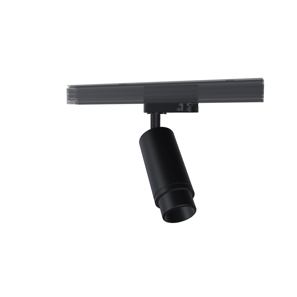 Κυλινδρικό φωτιστικό για ράγα τριών κύκλων με δυνατότητα ρύθμισης του κώνου φωτός με σύστημα ζουμ 10-50°. Το φωτιστικό είναι κατάλληλο για πηγές φωτός LED με υποδοχή GU10. Χρησιμοποιήστε πηγές φωτός με γωνία δέσμης 120° στο φωτιστικό σώμα για να αποφύγετε ανεπιθύμητες σκιές.