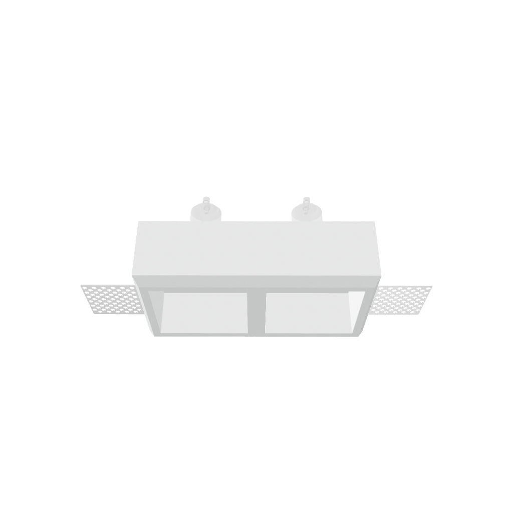 Γύψινο φωτιστικό με δυο τετράγωνες τρύπες χωρίς ακάλυπτο. Μπορεί να χρωματιστεί με μπογιά εσωτερικού. Μόνο για γυψοσανίδα.