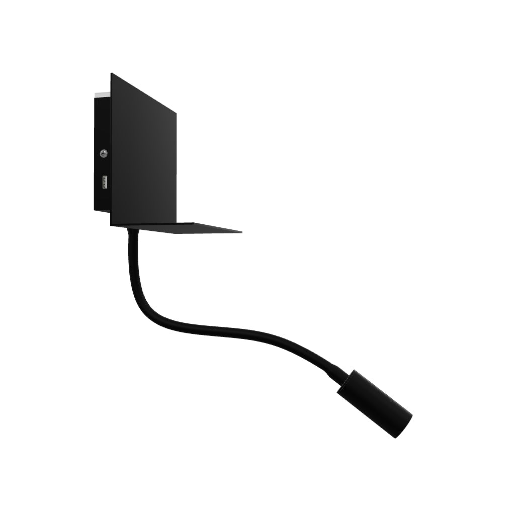Ράφι με ενσωματωμένο LED και θύρα USB για φόρτιση κινητών τηλεφώνων. Η έμμεση πηγή φωτισμού και το σποτ ρυθμίζονται από μεμονωμένους διακόπτες.