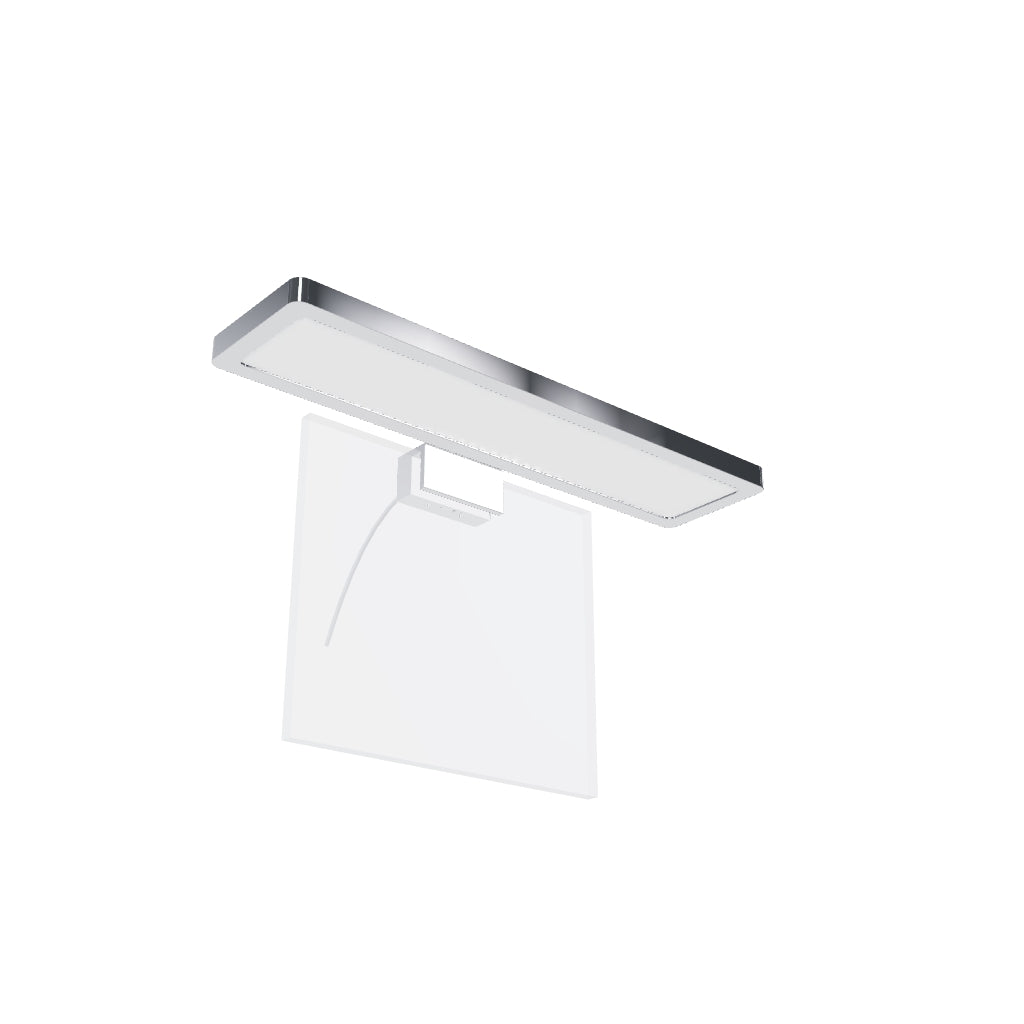 Ορθογώνιο φωτιστικό μπάνιου απο μέταλλο σε απόχρωση χρωμίου, με ενσωματωμένο LED για φωτισμό ΠΑΝΩ/ΚΑΤΩ. Κατάλληλο για ντουλάπια και ράφια.
