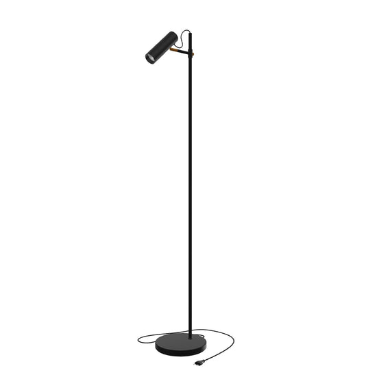 Κομψό φωτιστικό δαπέδου με κυλινδρική κεφαλή για φωτεινές πηγές LED GU10. Ο διακόπτης βρίσκεται στο πίσω μέρος της κεφαλής.