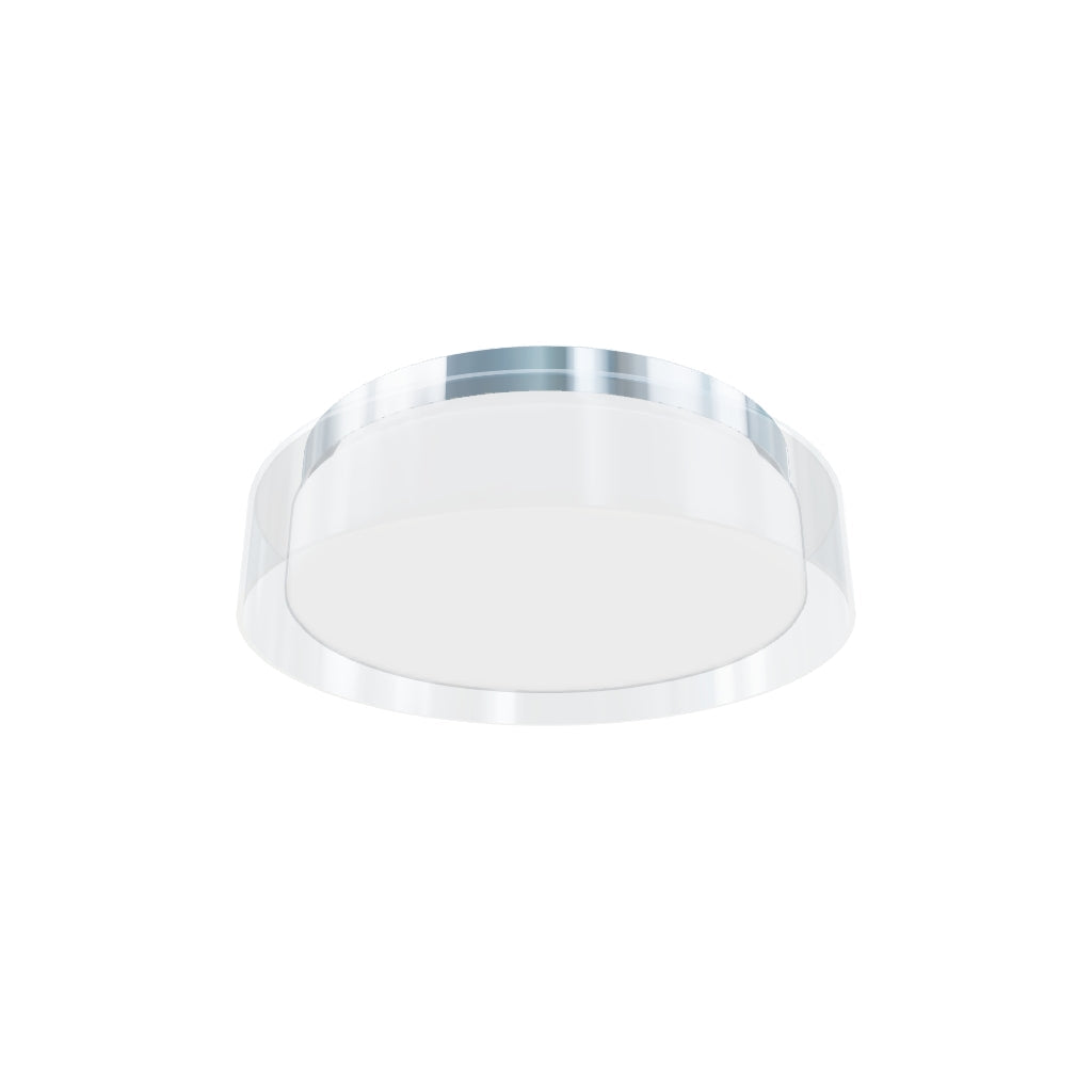 Φωτιστικό οροφής με καθαρό γυαλί στο εξωτερικό περίβλημα και γυαλί σε οπάλ απόχρωση στο εσωτερικό, με βάση από χρώμιο και Ε27 υποδοχή για φωτεινές πηγές LED. Κατάλληλο για μπάνια.