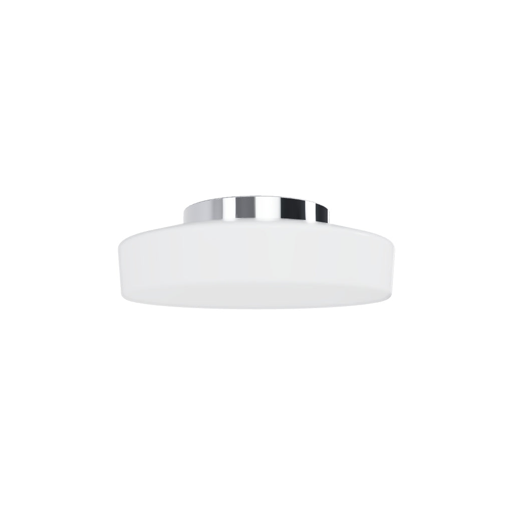 Φωτιστικό οροφής LED από γυαλί σε οπάλ απόχρωση με βάση από χρώμιο. Κατάλληλο για μπάνιο.